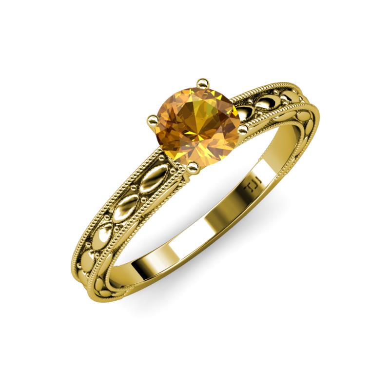 Round Citrine Marquise Design Milgrain Womens Solitaire Engagement Ring 0.87 ct 14K Yellow Gold More Details ...