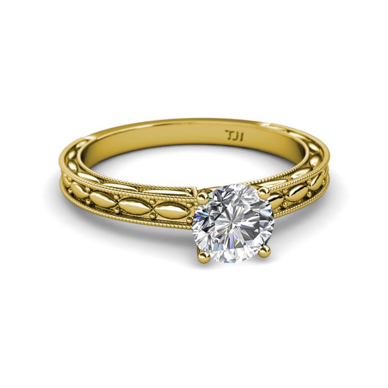 Round Forever One Moissanite Marquise Design Milgrain Womens Solitaire Engagement Ring 1.00 ct 18K Yellow Gold More Details ...