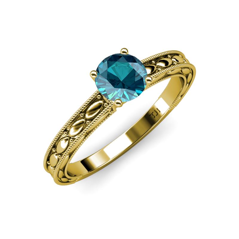 Round London Blue Topaz Marquise Design Milgrain Womens Solitaire Engagement Ring 0.95 ct 18K Yellow Gold More Details ...