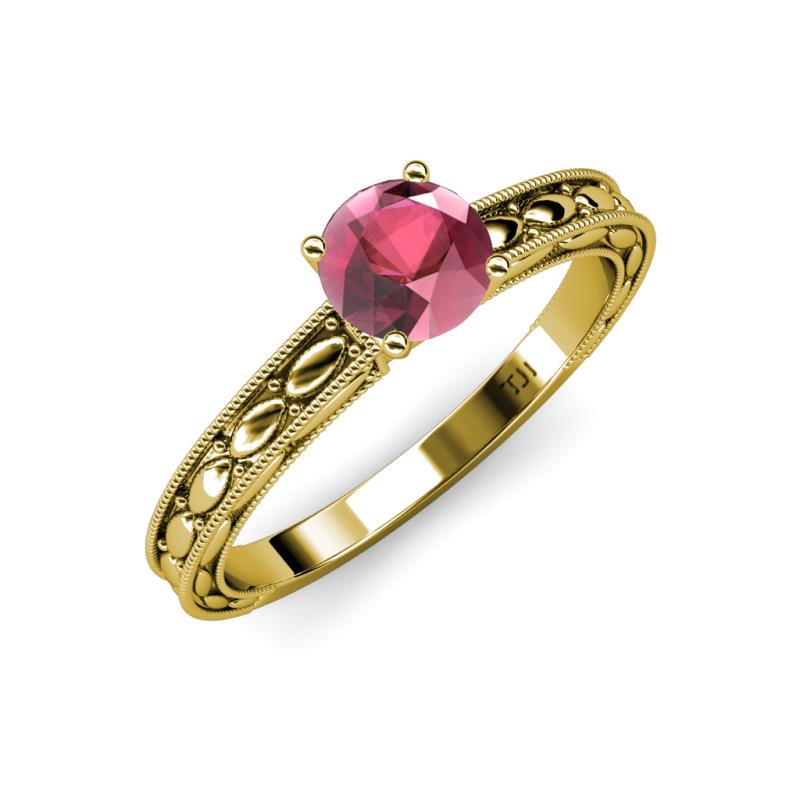 Round Rhodolite Garnet Marquise Design Milgrain Womens Solitaire Engagement Ring 1.00 ct 18K Yellow Gold More Details ...