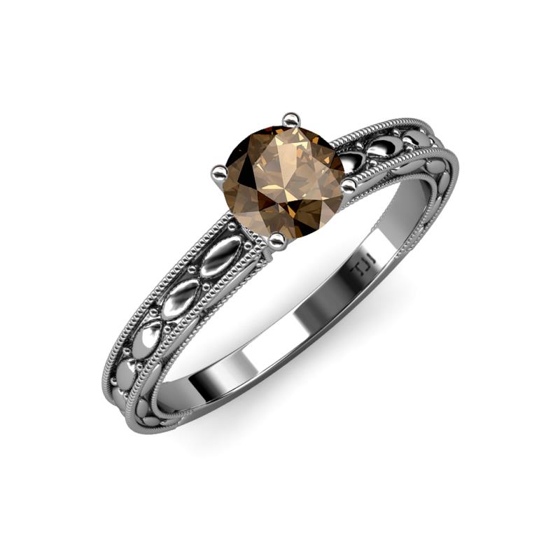 Round Smoky Quartz Marquise Design Milgrain Womens Solitaire Engagement Ring 1.00 ct 18K White Gold More Details ...