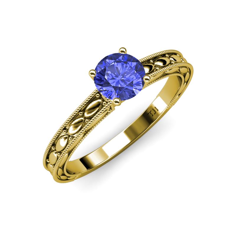 Round Tanzanite Marquise Design Milgrain Womens Solitaire Engagement Ring 0.92 ct 18K Yellow Gold More Details ...