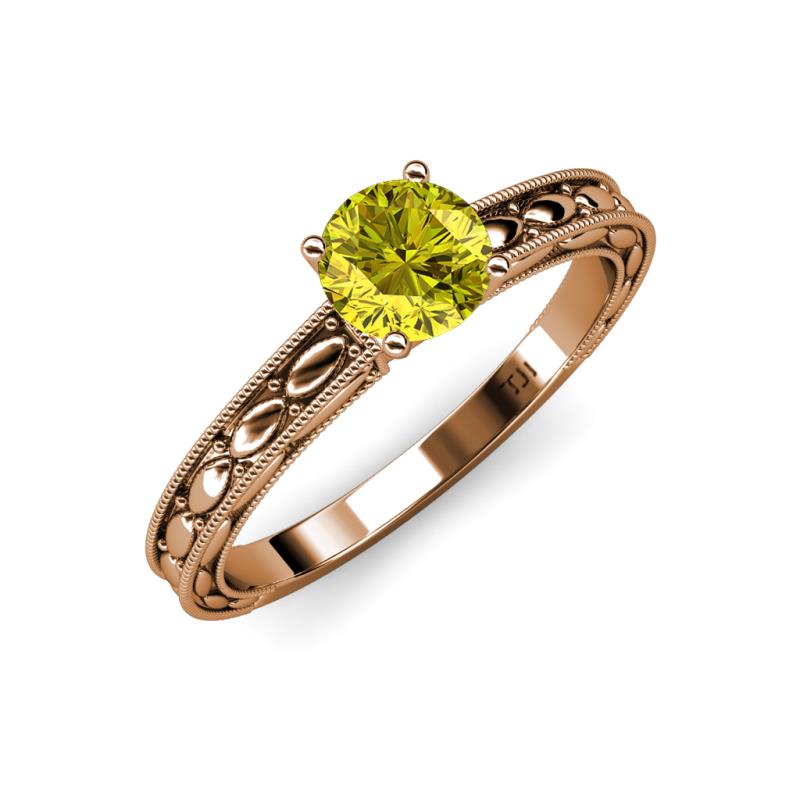 Round Yellow Diamond Marquise Design Milgrain Womens Solitaire Engagement Ring 0.80 ct 14K Rose Gold More Details ...