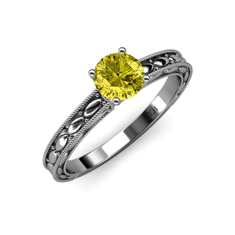 Round Yellow Diamond Marquise Design Milgrain Womens Solitaire Engagement Ring 0.80 ct 18K White Gold More Details ...