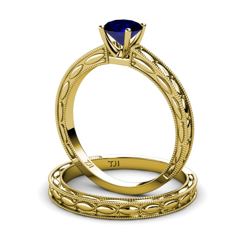1.15 ct Classic Blue Sapphire (6.00 mm) Marquise Design Solitaire Women Engagement Ring & Wedding Band Set in 18K Yellow Gold . More Details ...