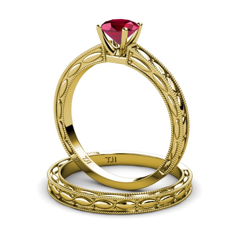 0.95 ct Classic Ruby (6.00 mm) Marquise Design Solitaire Women Engagement Ring & Wedding Band Set in 18K Yellow Gold . More Details ...