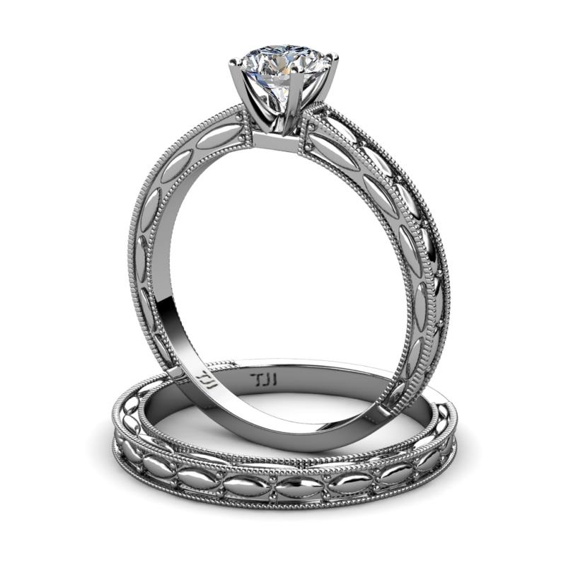 This Infinity Natural Diamond Solitaire Engagement Ring is accompanied by matching Wedding Band,both of which features interwined strands of metal forming infinity symbols representing limitless love.
