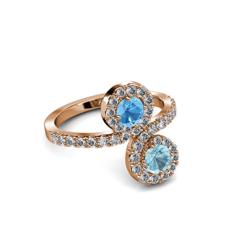 Aquamarine and Blue Topaz 2 Stone with Side Diamonds Bypass Engagement Ring 1.22 Carat tw in 14K Rose Gold. More Details ...