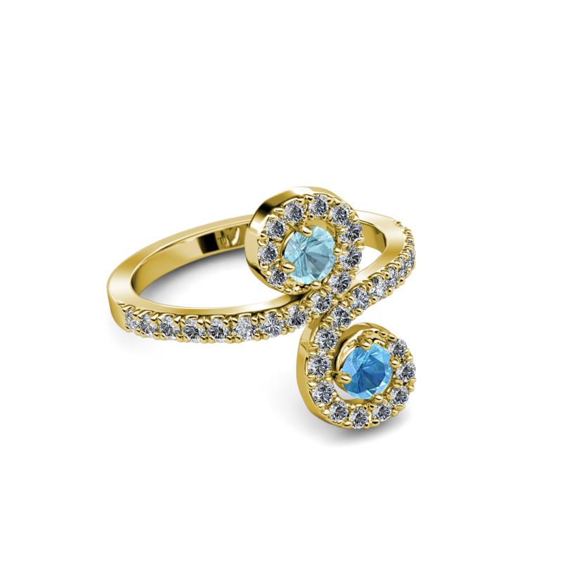 Aquamarine and Blue Topaz 2 Stone with Side Diamonds Bypass Engagement Ring 0.71 Carat tw in 14K Yellow Gold. More Details ...