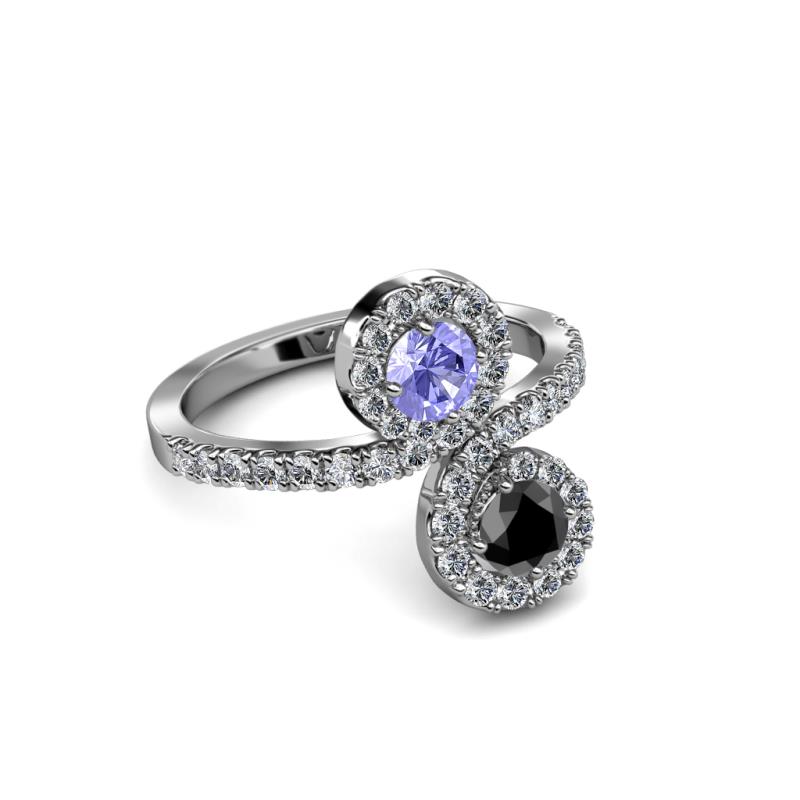 Black Diamond and Tanzanite 2 Stone with Side Diamonds Bypass Engagement Ring 1.24 Carat tw in 14K White Gold. More Details ...