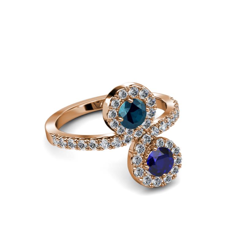 Blue Sapphire and Blue Diamond 2 Stone with Side Diamonds Bypass Engagement Ring 1.40 Carat tw in 14K Rose Gold. More Details ...