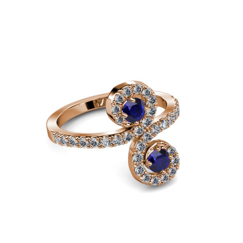 Blue Sapphire 2 Stone with Side Diamonds Bypass Engagement Ring 0.73 Carat tw in 14K Rose Gold. More Details ...