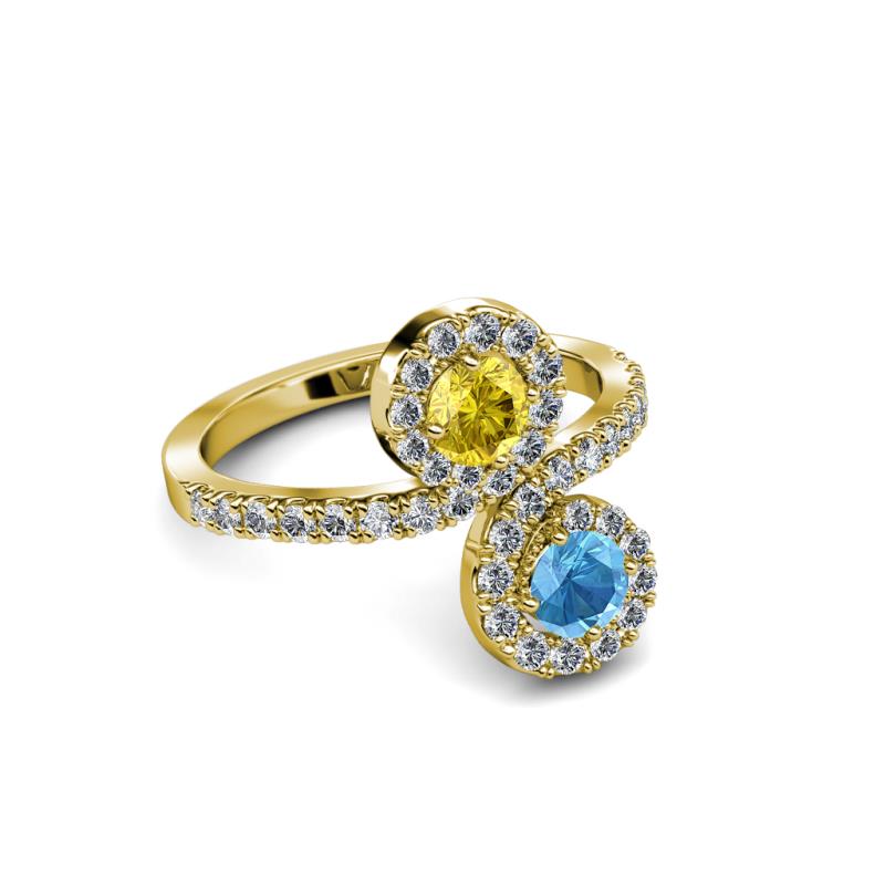 Blue Topaz and Yellow Sapphire 2 Stone with Side Diamonds Bypass Engagement Ring 1.22 Carat tw in 14K Yellow Gold. More Details ...