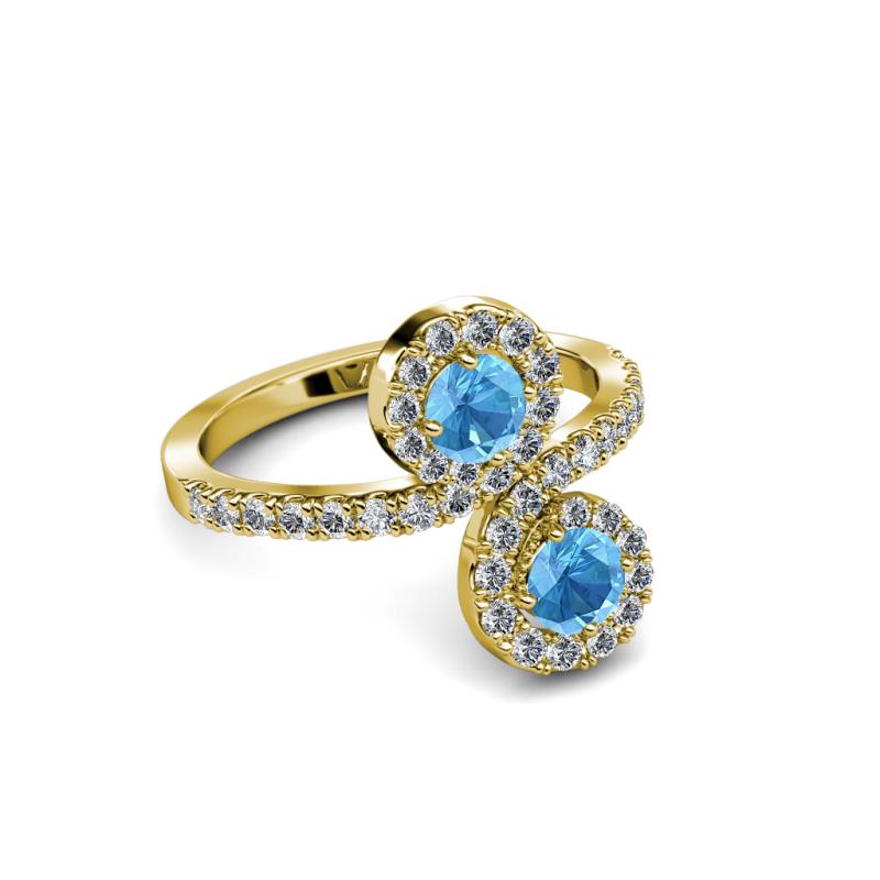 Blue Topaz 2 Stone with Side Diamonds Bypass Engagement Ring 1.20 Carat tw in 14K Yellow Gold. More Details ...