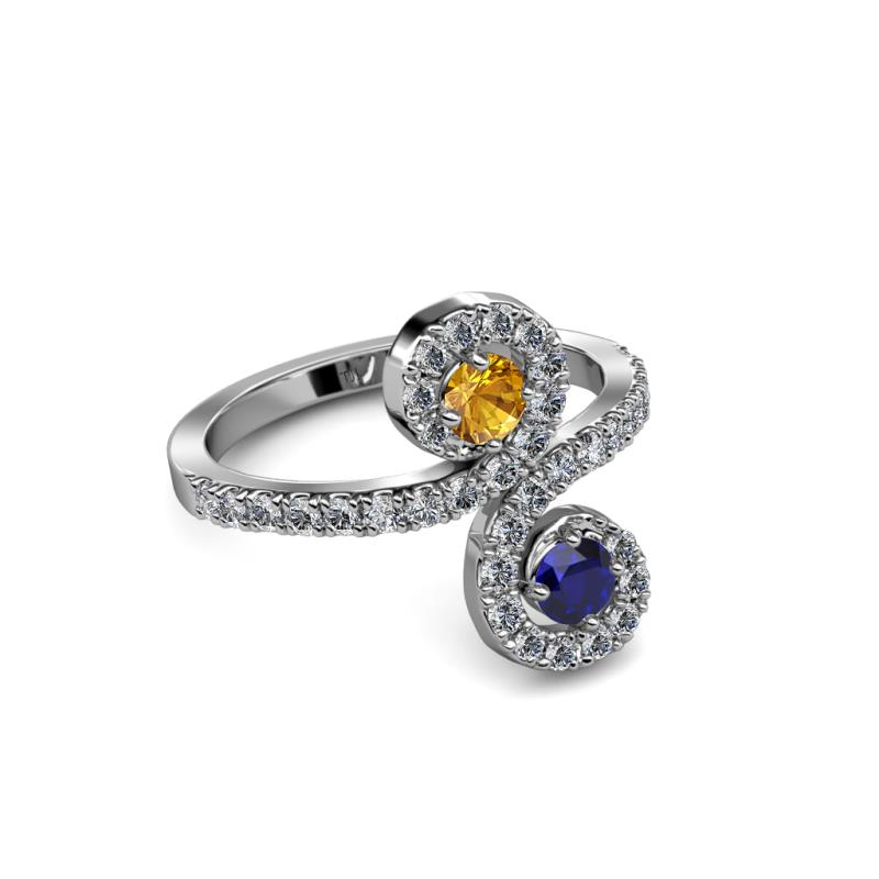 Citrine and Blue Sapphire 2 Stone with Side Diamonds Bypass Engagement Ring 0.72 Carat tw in 14K White Gold. More Details ...