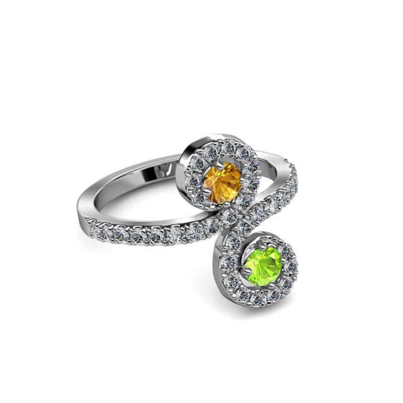 Citrine and Peridot 2 Stone with Side Diamonds Bypass Engagement Ring 0.74 Carat tw in 14K White Gold. More Details ...