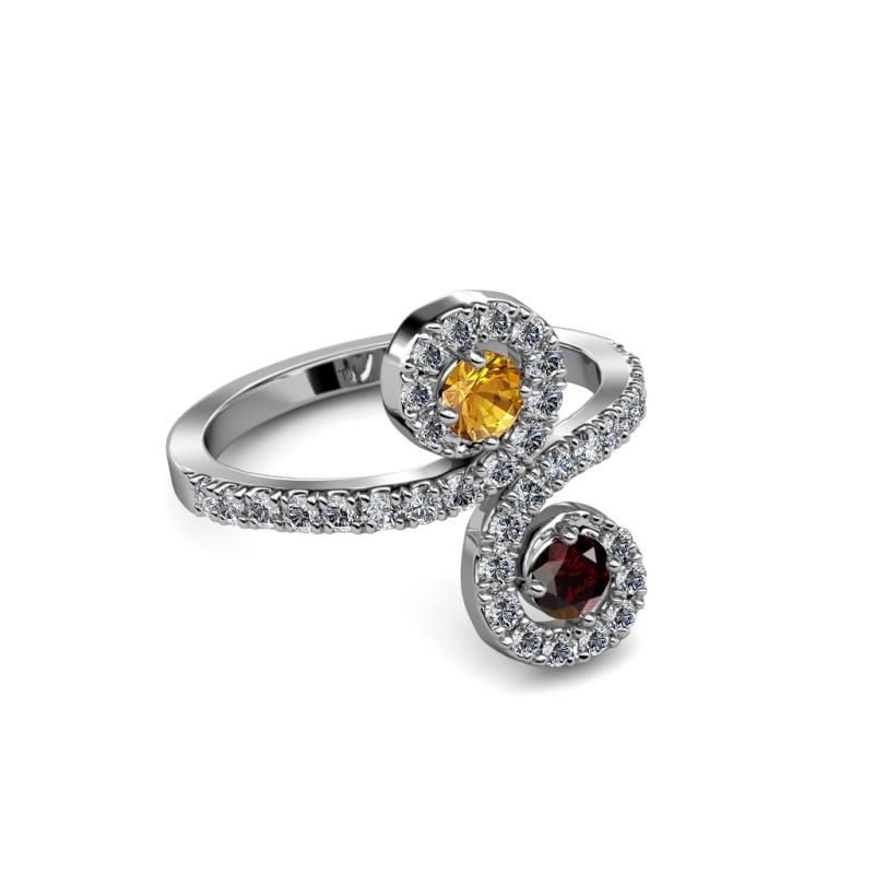 Citrine and Red Garnet 2 Stone with Side Diamonds Bypass Engagement Ring 0.74 Carat tw in 14K White Gold. More Details ...