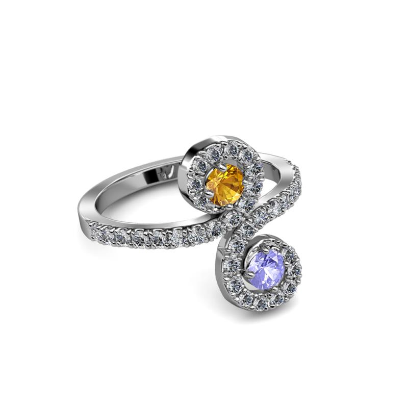 Citrine and Tanzanite 2 Stone with Side Diamonds Bypass Engagement Ring 0.72 Carat tw in 14K White Gold. More Details ...