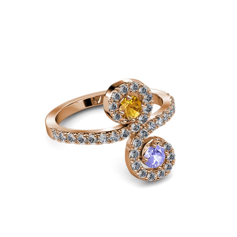 Citrine and Tanzanite 2 Stone with Side Diamonds Bypass Engagement Ring 0.72 Carat tw in 14K Rose Gold. More Details ...