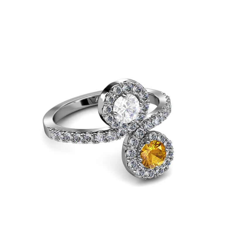 Citrine and White Sapphire 2 Stone with Side Diamonds Bypass Engagement Ring 1.24 Carat tw in 14K White Gold. More Details ...