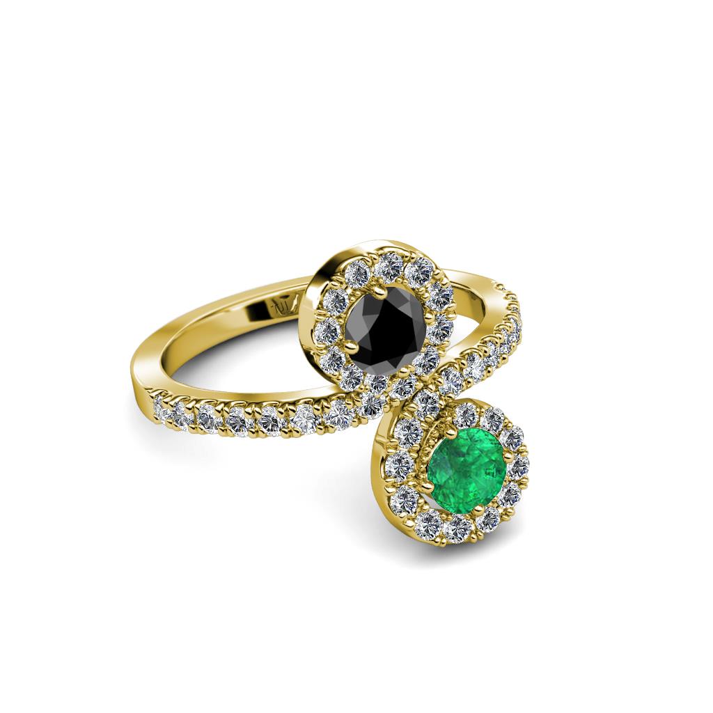 Emerald and Black Diamond 2 Stone with Side Diamonds Bypass Engagement Ring 1.25 Carat tw in 14K Yellow Gold. More Details ...