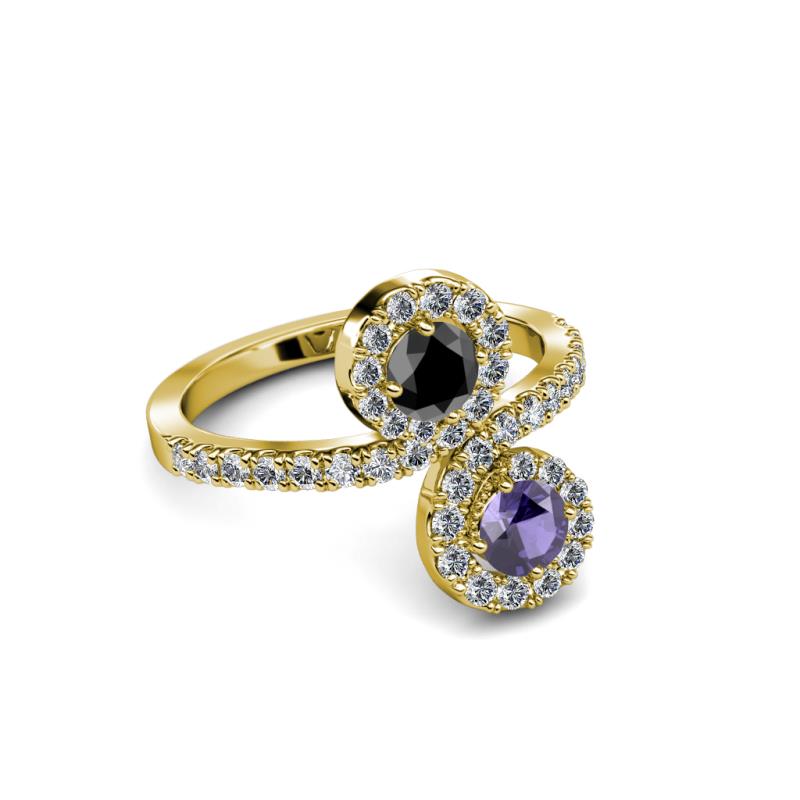 Iolite and Black Diamond 2 Stone with Side Diamonds Bypass Engagement Ring 1.27 Carat tw in 14K Yellow Gold. More Details ...