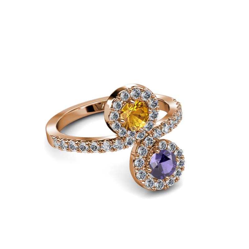 Iolite and Citrine 2 Stone with Side Diamonds Bypass Engagement Ring 1.23 Carat tw in 14K Rose Gold. More Details ...
