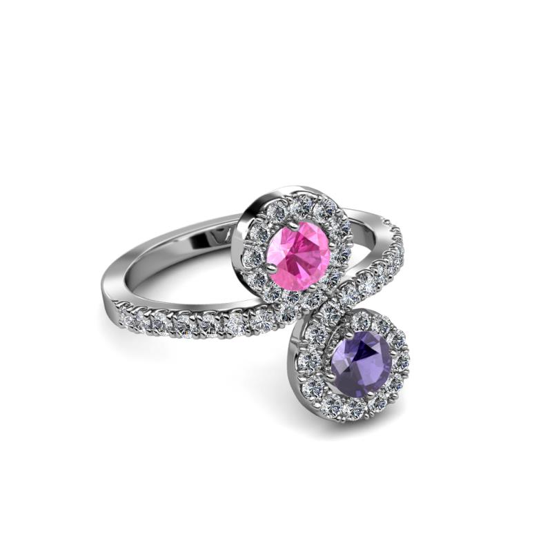 Iolite and Pink Sapphire 2 Stone with Side Diamonds Bypass Engagement Ring 1.24 Carat tw in 14K White Gold. More Details ...