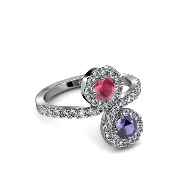 Iolite and Rhodolite Garnet 2 Stone with Side Diamonds Bypass Engagement Ring 1.26 Carat tw in 14K White Gold. More Details ...
