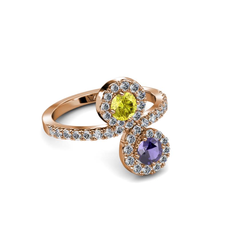Iolite and Yellow Diamond 2 Stone with Side Diamonds Bypass Engagement Ring 1.22 Carat tw in 14K Rose Gold. More Details ...