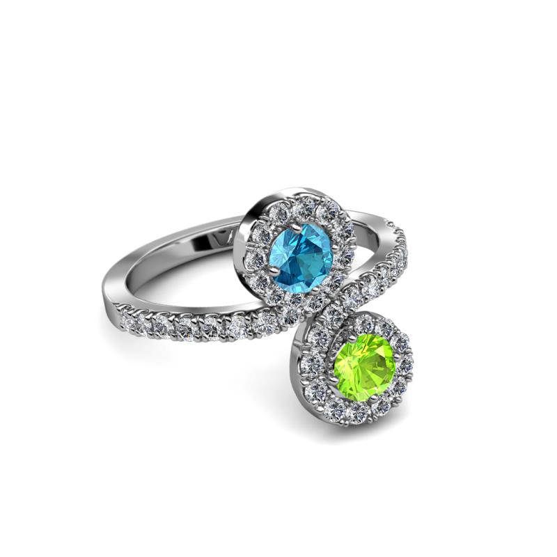 Peridot and London Blue Topaz 2 Stone with Side Diamonds Bypass Engagement Ring 1.28 Carat tw in 14K White Gold. More Details ...