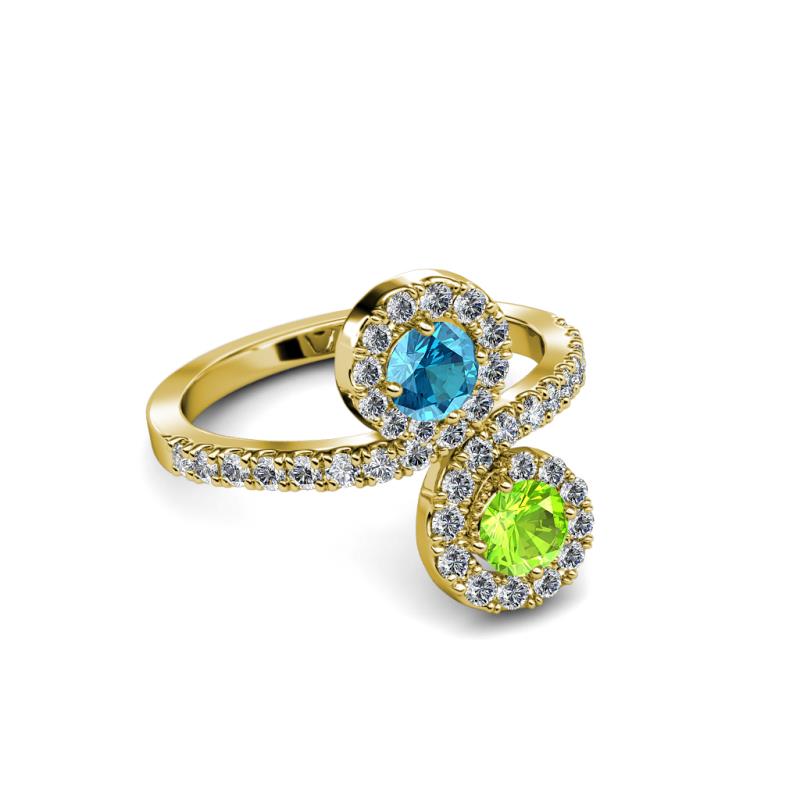 Peridot and London Blue Topaz 2 Stone with Side Diamonds Bypass Engagement Ring 1.28 Carat tw in 14K Yellow Gold. More Details ...