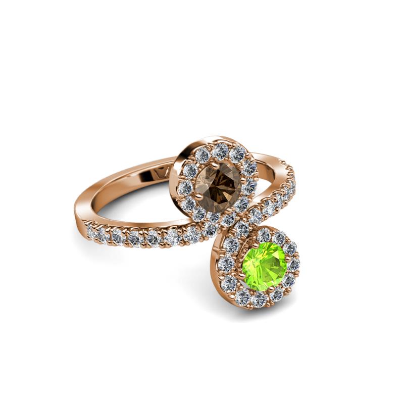 Peridot and Smoky Quartz 2 Stone with Side Diamonds Bypass Engagement Ring 1.24 Carat tw in 14K Rose Gold. More Details ...