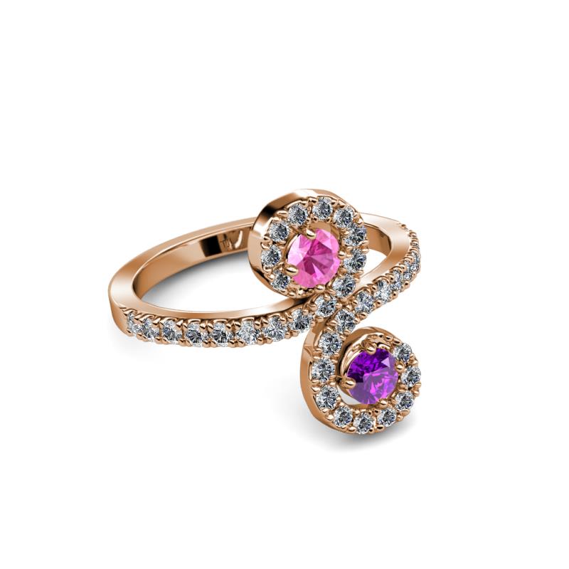 Pink Sapphire and Amethyst 2 Stone with Side Diamonds Bypass Engagement Ring 0.73 Carat tw in 14K Rose Gold. More Details ...