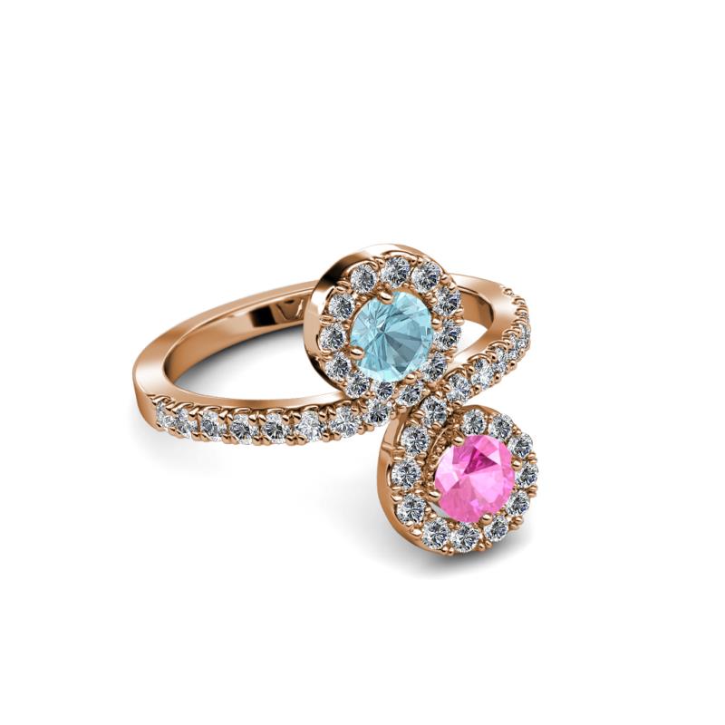 Pink Sapphire and Aquamarine 2 Stone with Side Diamonds Bypass Engagement Ring 1.24 Carat tw in 14K Rose Gold. More Details ...