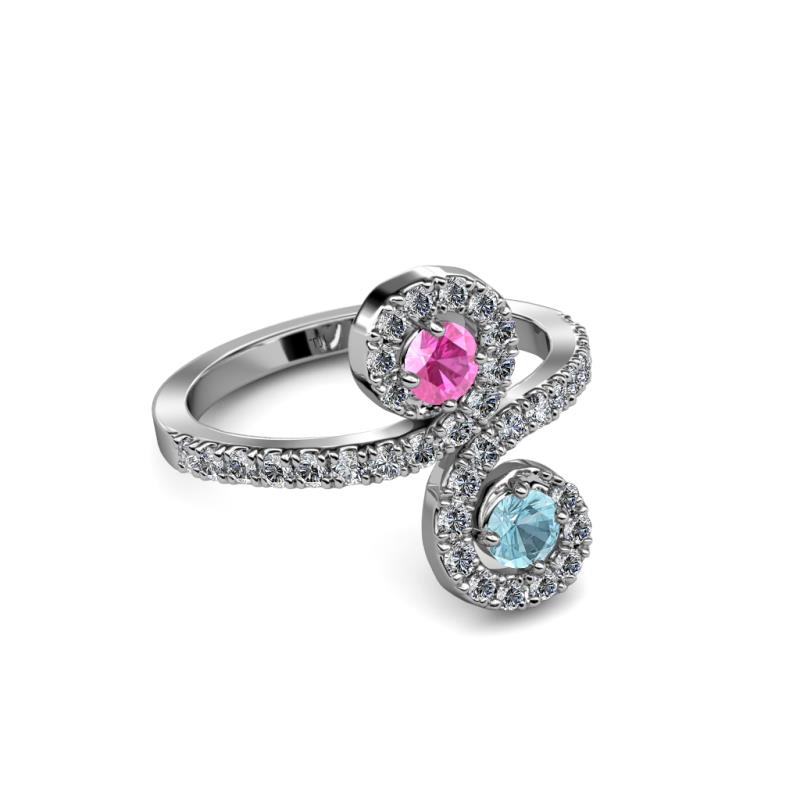 Pink Sapphire and Aquamarine 2 Stone with Side Diamonds Bypass Engagement Ring 0.73 Carat tw in 14K White Gold. More Details ...