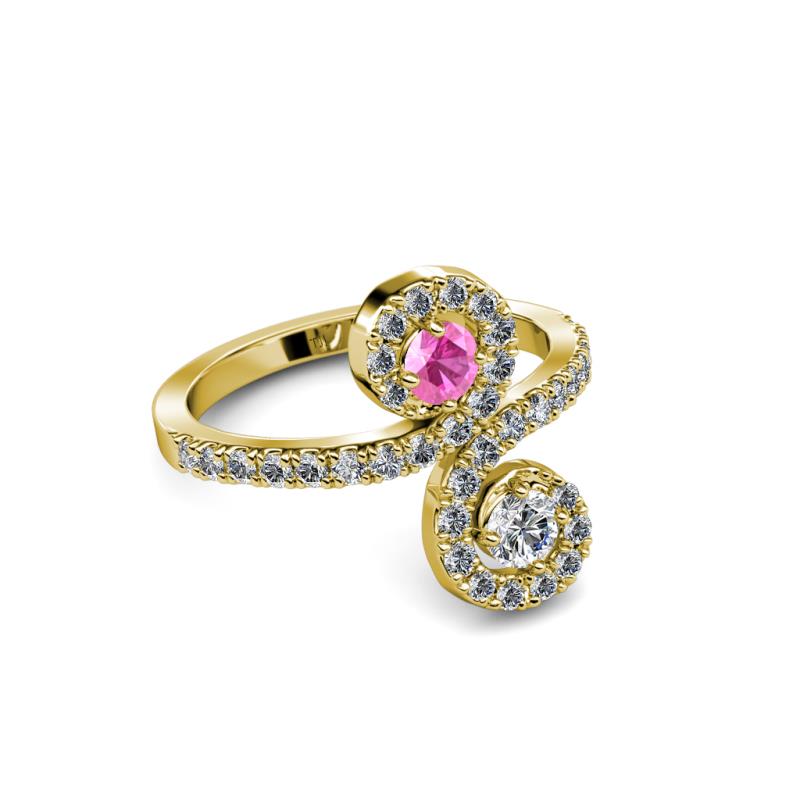 Pink Sapphire and Diamond 2 Stone with Side Diamonds Bypass Engagement Ring 0.74 Carat tw in 14K Yellow Gold. More Details ...