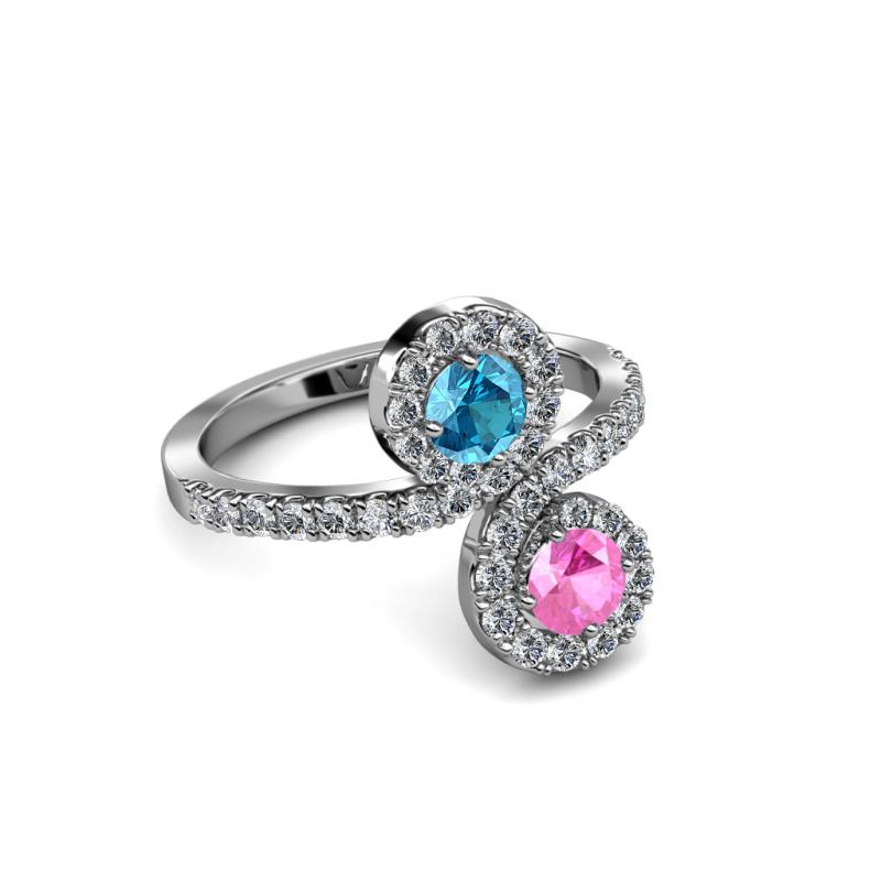 Pink Sapphire and London Blue Topaz 2 Stone with Side Diamonds Bypass Engagement Ring 1.25 Carat tw in 14K White Gold. More Details ...