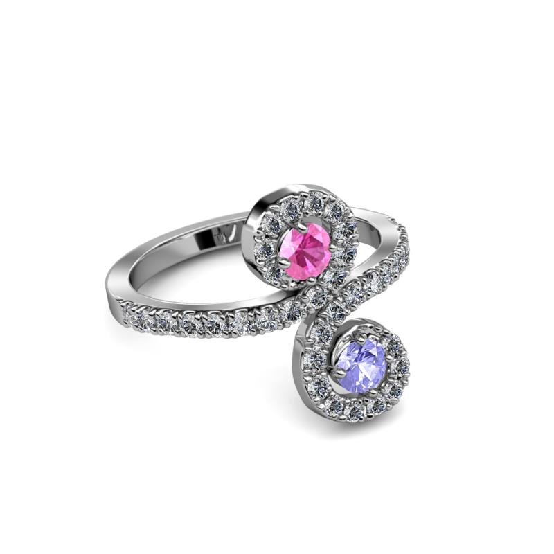 Pink Sapphire and Tanzanite 2 Stone with Side Diamonds Bypass Engagement Ring 0.74 Carat tw in 14K White Gold. More Details ...