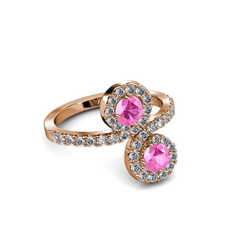 Pink Sapphire 2 Stone with Side Diamonds Bypass Engagement Ring 1.24 Carat tw in 14K Rose Gold. More Details ...