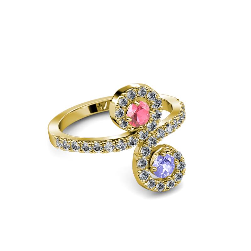 Pink Tourmaline and Tanzanite 2 Stone with Side Diamonds Bypass Engagement Ring 0.73 Carat tw in 14K Yellow Gold. More Details ...