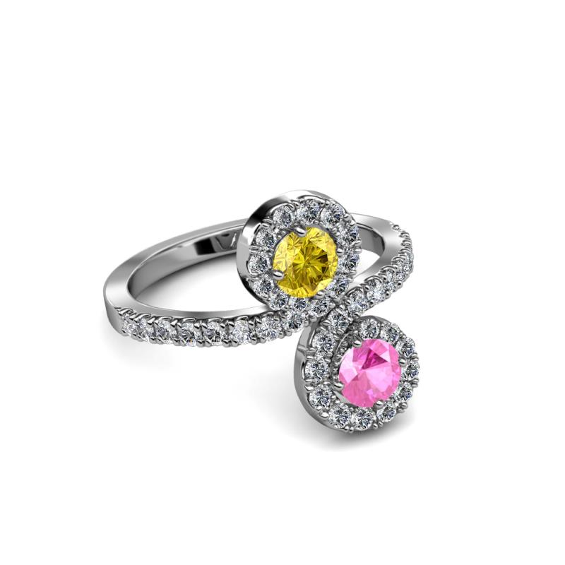 Pink and Yellow Sapphire 2 Stone with Side Diamonds Bypass Engagement Ring 1.24 Carat tw in 14K White Gold. More Details ...