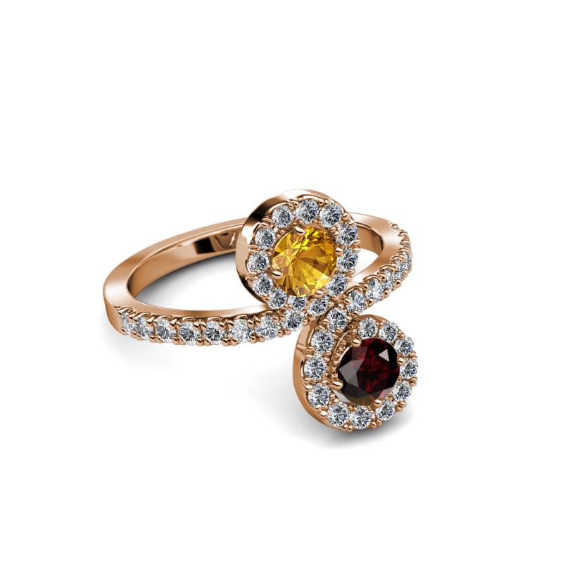 Red Garnet and Citrine 2 Stone with Side Diamonds Bypass Engagement Ring 1.26 Carat tw in 14K Rose Gold. More Details ...