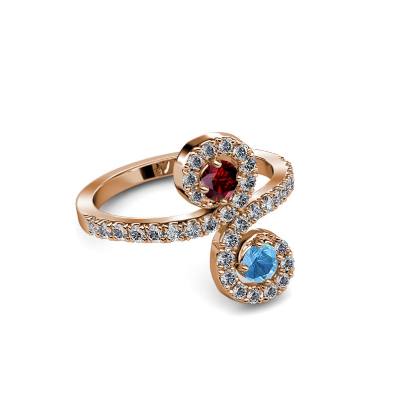 Ruby and Blue Topaz 2 Stone with Side Diamonds Bypass Engagement Ring 0.73 Carat tw in 14K Rose Gold. More Details ...