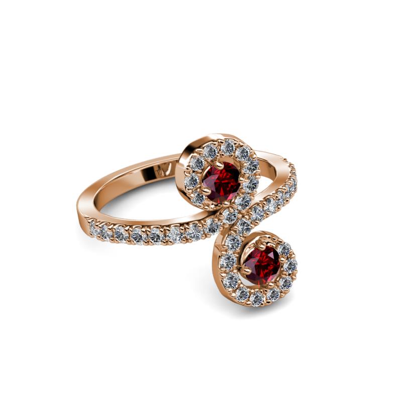 Ruby 2 Stone with Side Diamonds Bypass Engagement Ring 0.75 Carat tw in 14K Rose Gold. More Details ...
