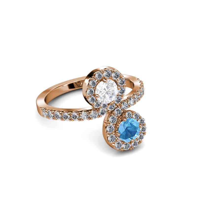A divine symbol of togetherness, where one stone represents love and one friendship while each end of the ring swirls around the marvelous combination of Blue Topaz & White Sapphire meeting above and below, rather than in the center.
