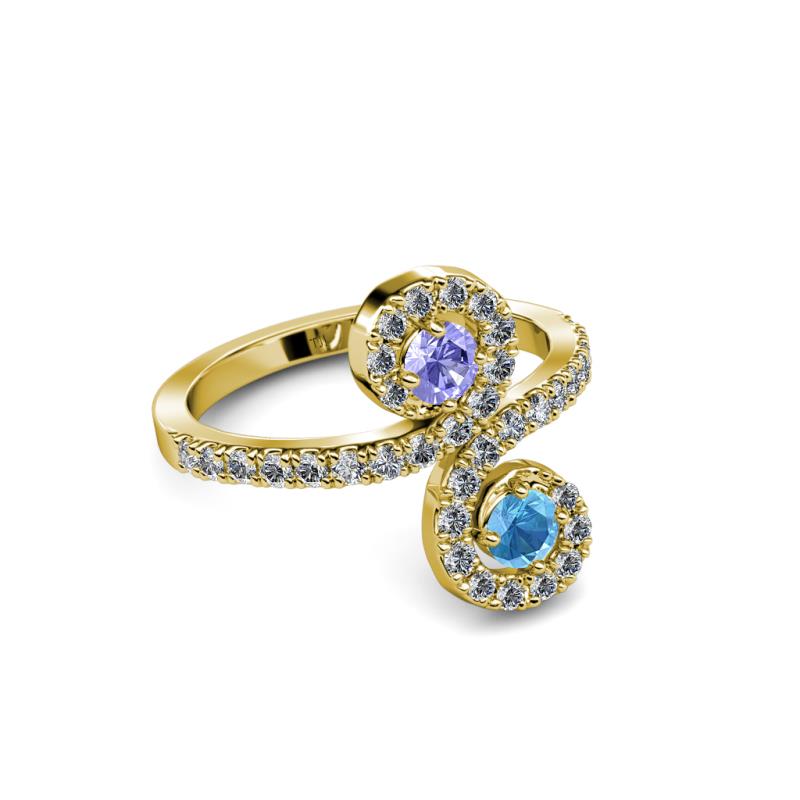 Tanzanite and Blue Topaz 2 Stone with Side Diamonds Bypass Engagement Ring 0.72 Carat tw in 14K Yellow Gold. More Details ...