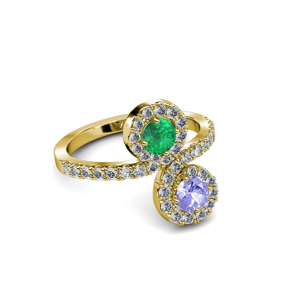 Tanzanite and Emerald 2 Stone with Side Diamonds Bypass Engagement Ring 1.19 Carat tw in 14K Yellow Gold. More Details ...