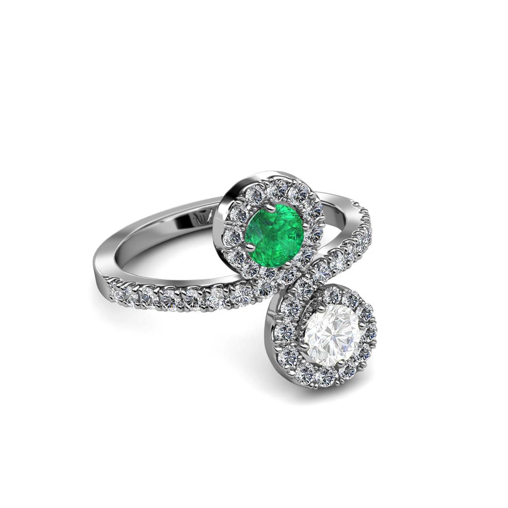 White Sapphire and Emerald 2 Stone with Side Diamonds Bypass Engagement Ring 1.22 Carat tw in 14K White Gold. More Details ...