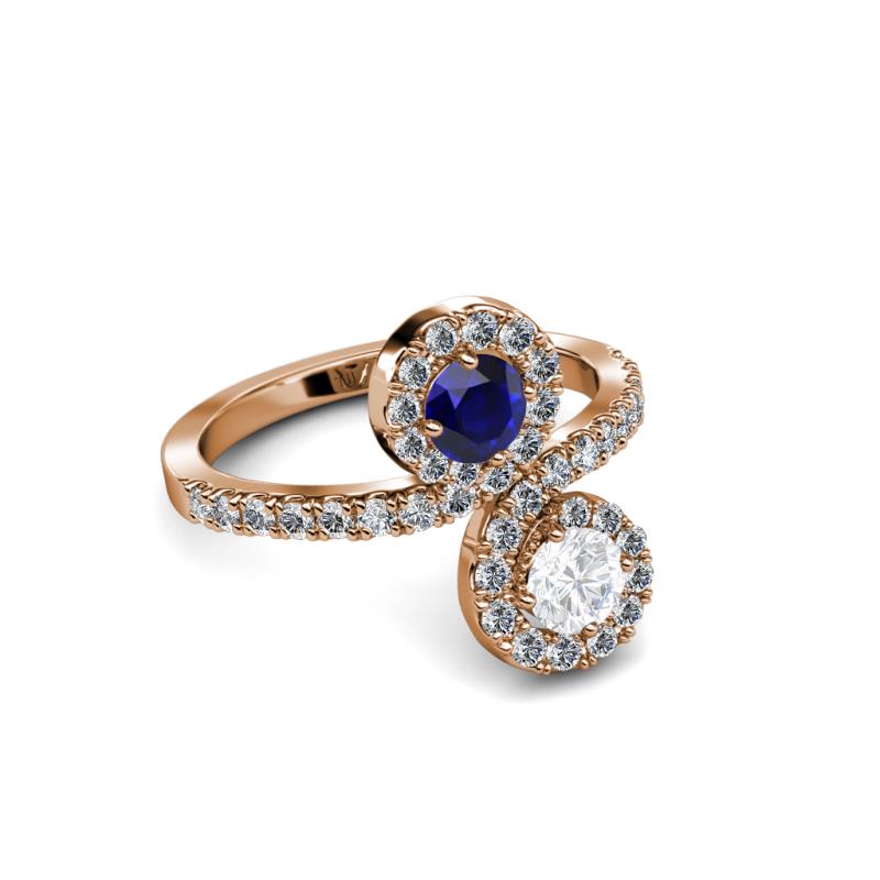 A divine symbol of togetherness, where one stone represents love and one friendship while each end of the ring swirls around the marvelous combination of White Sapphire & Blue Sapphire meeting above and below, rather than in the center.